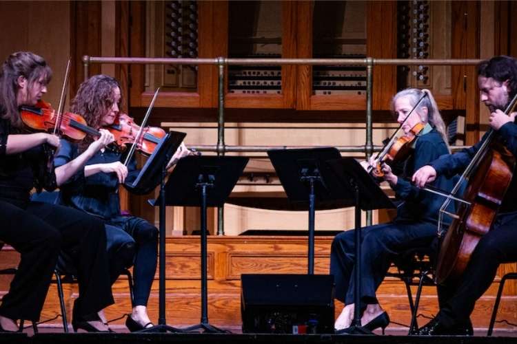 This Mendelssohn quartet features a ‘song’ or motif in the opening of the first movement and the end of the last movement titled 'Ist es wahr?', or, for those who don’t speak German, 'Is is true?' The first movement’s lyrical opening in A major really opens the door to this playful quartet, springing to life later in the movement as a lively gesture in A minor. The second movement has an F major opening with a surprise fugue in the middle section like a conversation between second violinist, Ali and Heidi on the viola that interchanges into D minor with the opening theme before building to extreme heights of intensity and volume carried through with heavy vibrato and bow pressure to match the intensity which could be likened to that of a pressure cooker. The first violin returns the music to the opening theme of the movement with a stand-alone solo before moving into the Intermezzo; the third movement of the piece. This opens with a simple melody in A minor, played by Janet Anderson, delicately encased by pizzicato strings with a fast and spritely middle section in A major which is a total reverse of the first movement of the work. After returning to the opening theme, the coda brings the music to an end with a fast accelerando played at the softest dynamic in the movement.