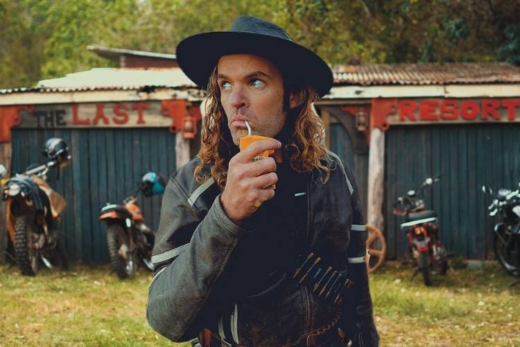 “This is a family friendly comedy film, which is also a live music gig, where the actor on screen is also playing the soundtrack live,” Producer (and Eddie's wife) Aimee Gray says. “Set in the not-so-distant future when AI has completely taken over, one man has survived by never getting a smartphone, riding his motorcycle through the wild west of the internet free 'outside'. He has to fight to save humanity.”