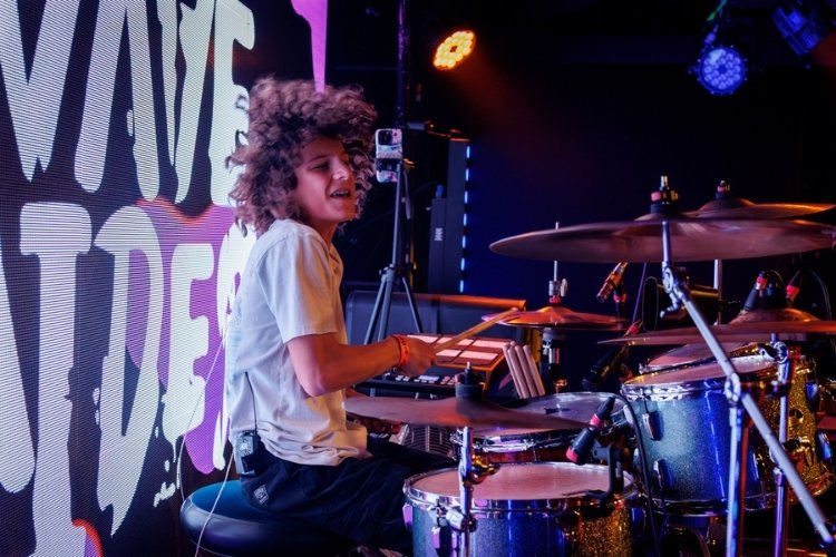 Tom's the quiet achiever but on the tubs he's thunder, hammering every fill clean through the walls. Both Pete and Jayden leap off their risers like maniacs, fearless, locked in. Their energy is immense.